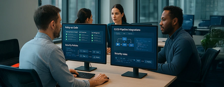 - Policy‑as‑code for WAF, API, bot, and DDoS protections—version‑controlled alongside app and infra code for accountability.