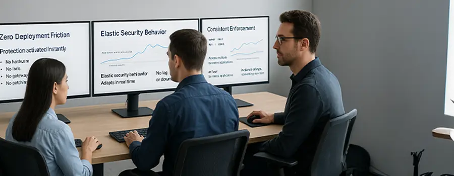 - Zero deployment friction—no hardware, VMs, or gateways to maintain, configure, or patch.