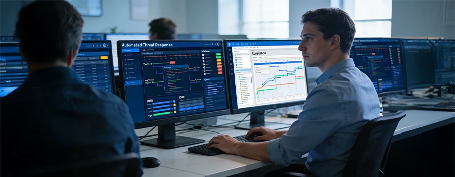 - Role-based dashboards + SIEM/SOAR integration (Splunk/ELK)