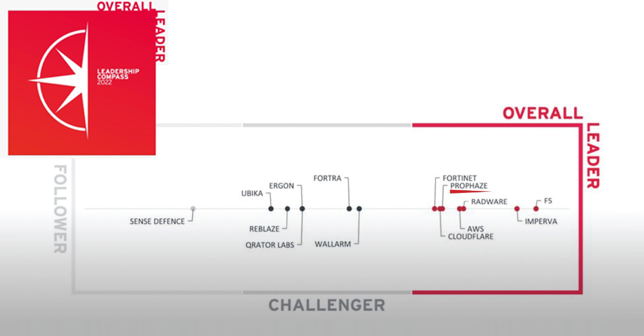 Prophaze in the WAF Overall Leader Compass by KuppingerCole Analysts 2024.