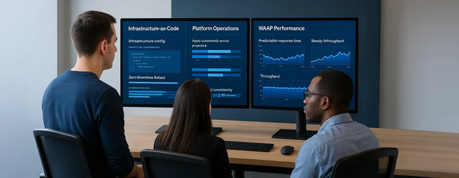 - Policy-as-code for WAF, API, bot, and DDoS controls, versioned alongside app and infra code for consistent, reviewable changes.