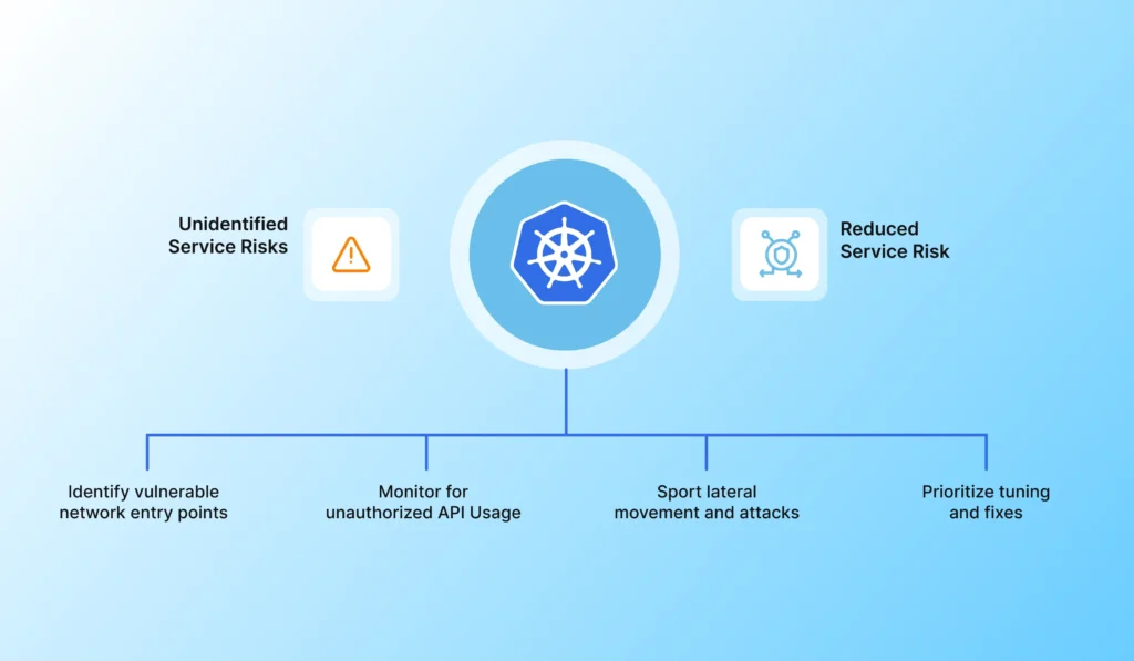 - Surface exposed services, abused APIs, and anomalous east‑west patterns that indicate lateral movement or active attacks.