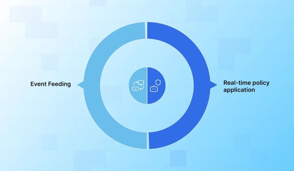 AI identifies and blocks L7 DDoS, bot attacks, scraping, credential stuffing, and malicious internal traffic.