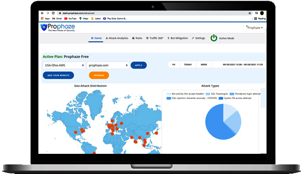 Prophaze firewall enables proactive defense, not just detection. It blocks cyber-attacks, mitigates vulnerabilities, and shares threat intelligence to close gaps in your enterprise-wide security coverage with existing security products such as endpoint protection, SIEM, and SOAR. Prophaze comes with ‘to the point dash’ so the necessary information needed for monitoring the protection is available