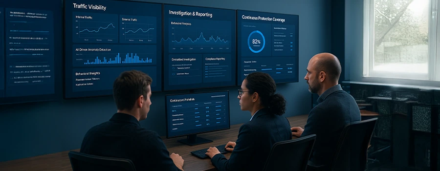 - Real‑time visibility into internal and external traffic with AI‑driven anomaly detection.