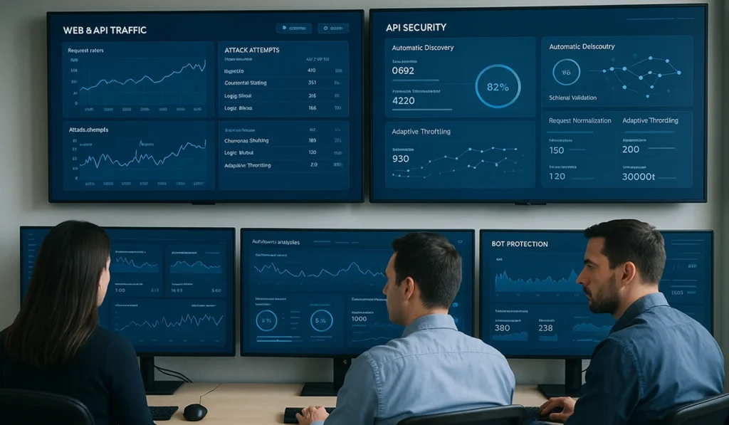 - Intelligent API security with automatic discovery, schema validation, request normalization, and adaptive throttling for managed and shadow APIs.